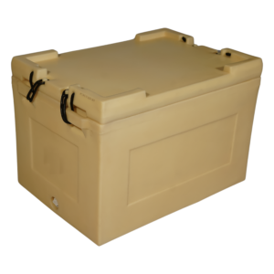 110 lts PU Injected ice / cooler box with fixed lid made of rotational moulded LLDPE. Suitable for cold and hot application, Available with customized product colours and logo on quantity order.